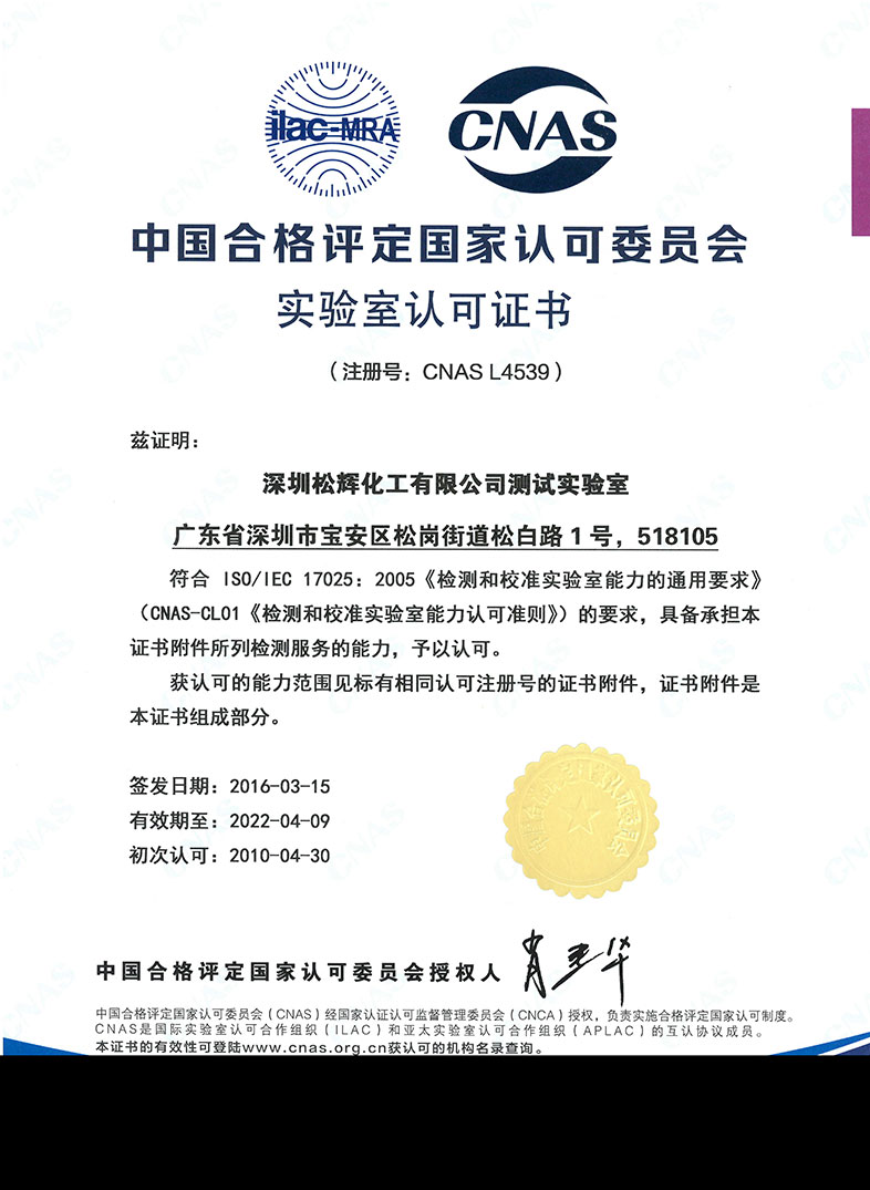 CNAS 實(shí)驗(yàn)室認(rèn)可證書(shū) (CNAS L4539)